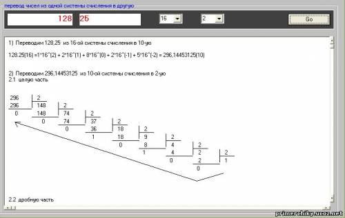 Развернутое представление перевода дробных (в т.ч. и целых)чисел из одной системы счисления в другую. Основание системы устанавливается от 2 до 16.